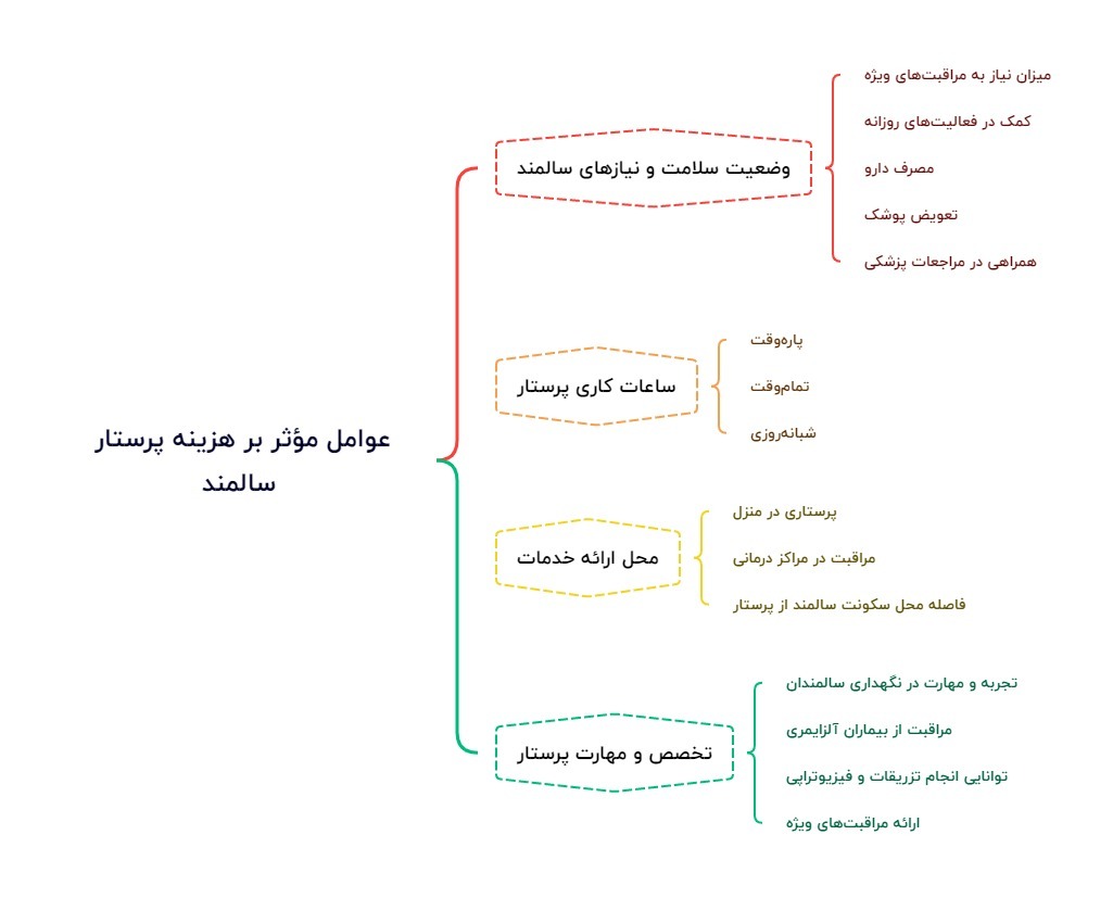هزینه پرستاری از سالمند تحت تأثیر عوامل متعددی قرار دارد که در ادامه به بررسی مهمترین آنها میپردازیم: